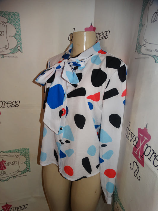 Sold outWhite Blue Dot Tie Top Size S