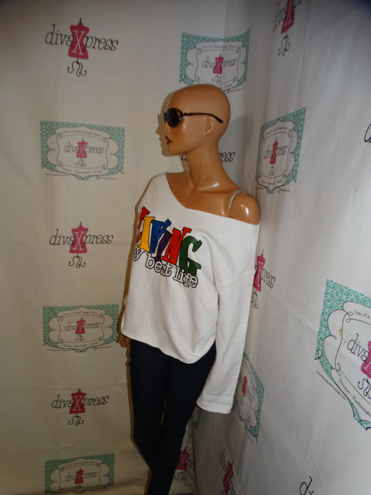 White Living My Best Life Off Shoulder Top Size L