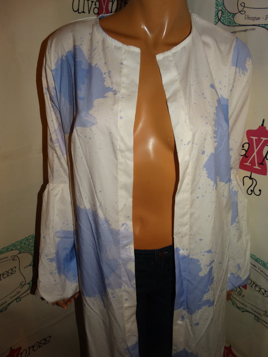 Sold outWhite Blue Long Duster Size M