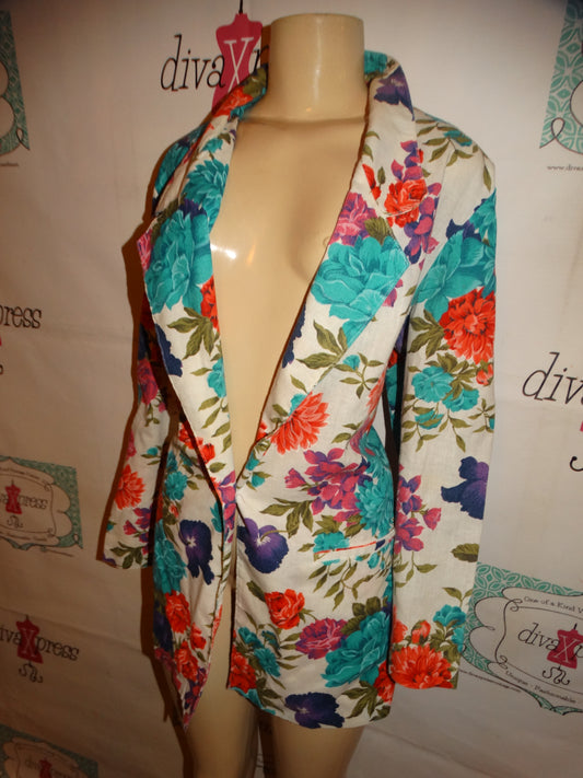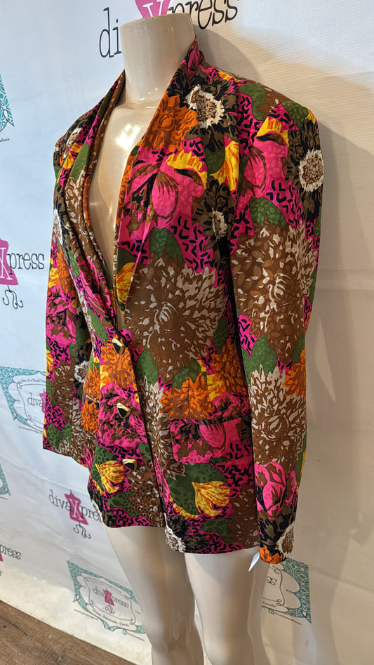 Vintage Colorful Brown/Pink Floral Silk Blazer Size L