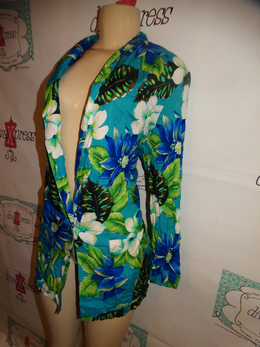 Vintage Ellen Fiigg Blue/Green Floral Blazer Size XL