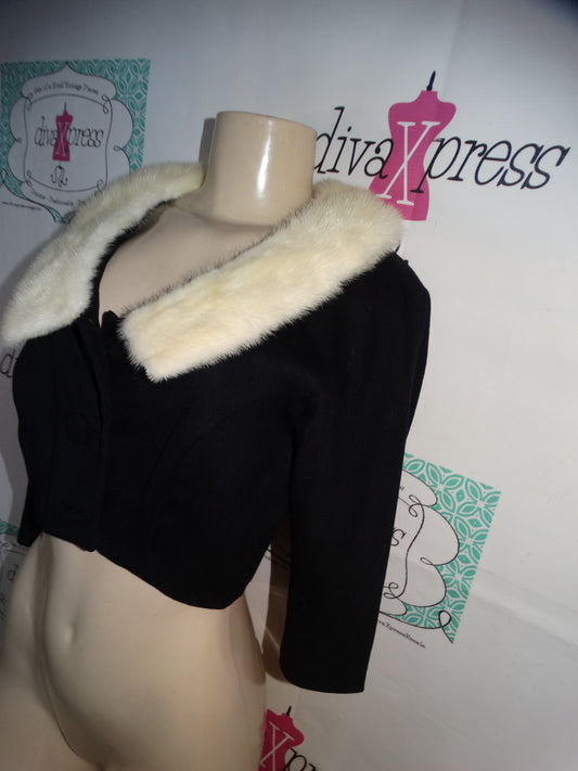 Vintage Crop Blazer With Cream Mink Collar Size S