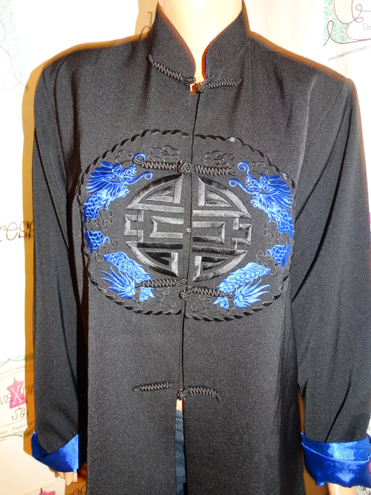 Vintage Silver Dragon Black/Blue Dragon Asian Blazer Size L