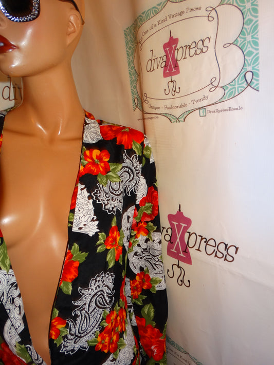 Vintage Norton McNaughton Black floral Black/White Blazer Size L
