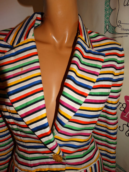 Vintage Randy Kemper White Colorful Stripe Blazer Size M