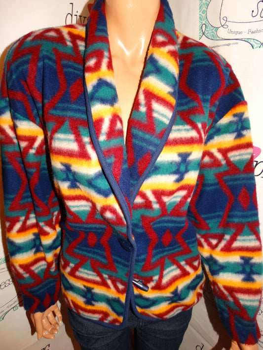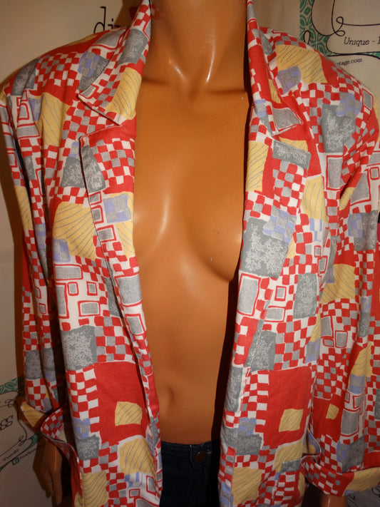 Vintage Ninon Burgundy /Blue Colorful Blazer Size XL