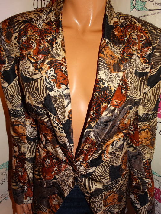 Vintage K Arnold Tan Animal Print Blazer Size M