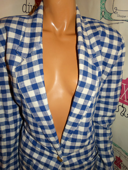 Vintage Liz Sport Blue/White Checkered Blazer Size XL