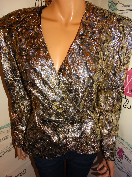 Vintage Karen Lawerence Gold Peplum Blazer Size M