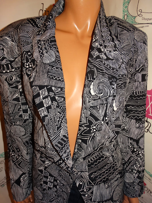 Vintage LaulineTriegiere Black Colorful Blazer Size M