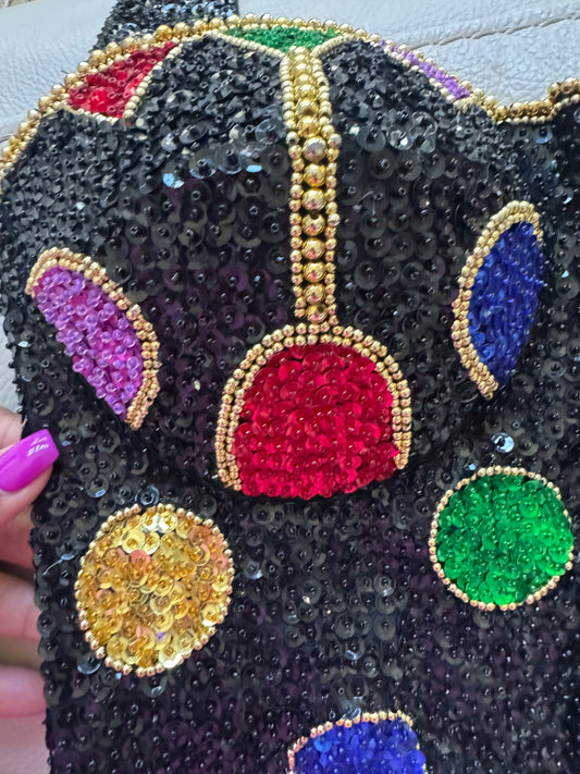 Vintage Modi Demin Black Heavy Sequins Jean Jacket Size M