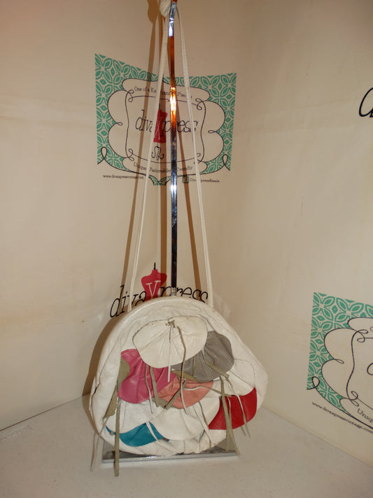 Vintage White Leather Colorful Purse Size M