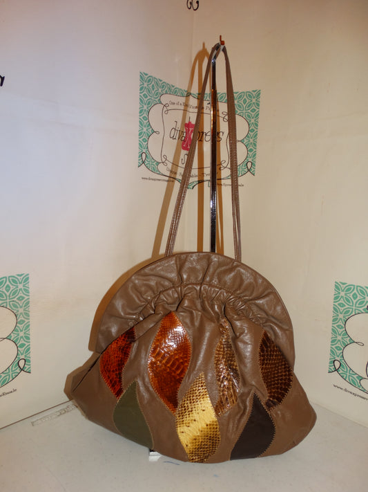 Vintage Leather Snake Skin Patch Purse Size L