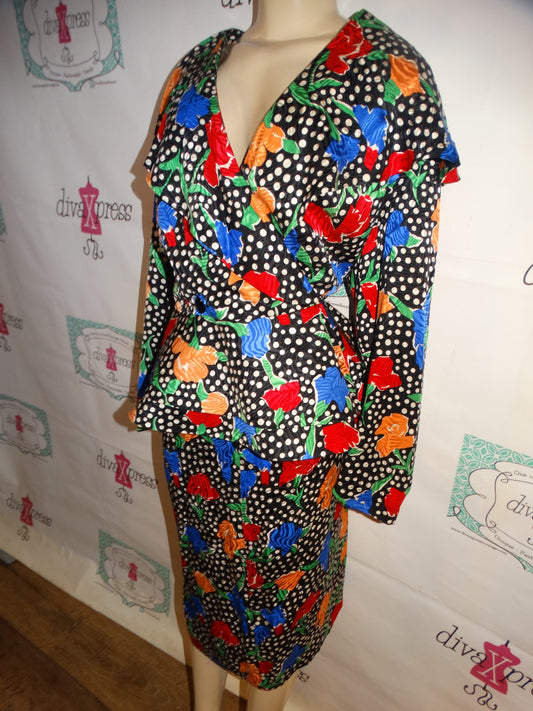 Vintage Galleria Black/White Colorful 2 Piece Skirt Set Silk Size 1x