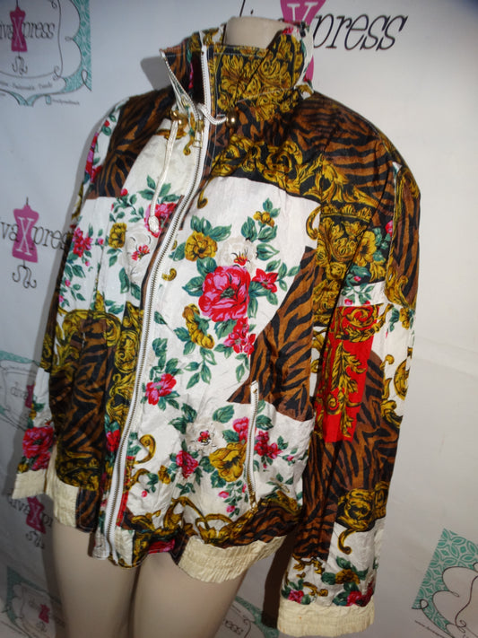 Vintage Andy Johns White Colorful Leopard Bomber Jacket Size 1x