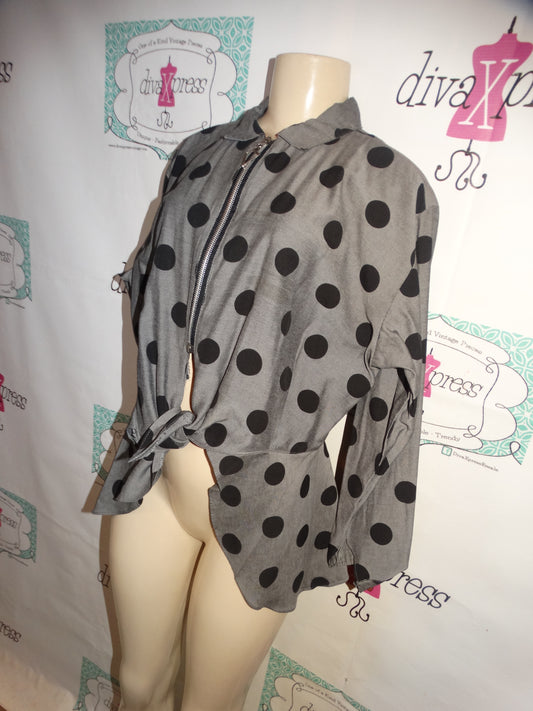 Vintage Mitsouki Paris Gray and black Polka Dot Peplum Top Size 1x
