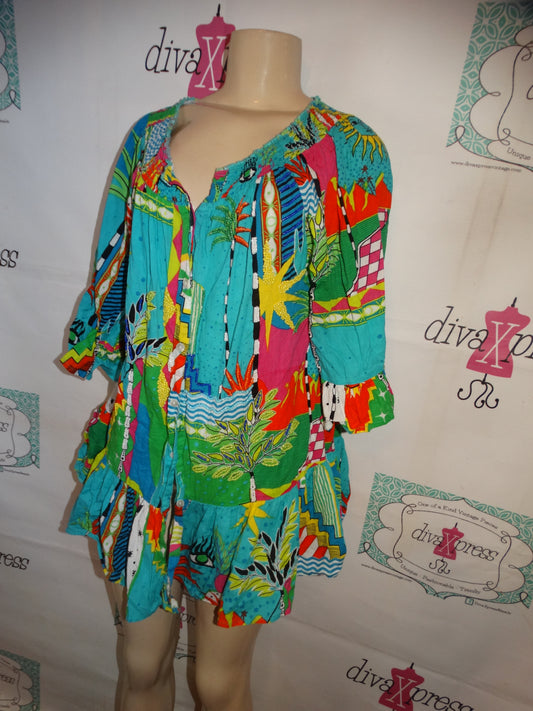 Vintage Pasitana Green Colorful Beaded Top Size 1x