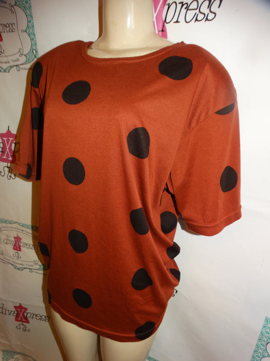 Vintage Pasta Brown/Black Polka Dot Top Size XL