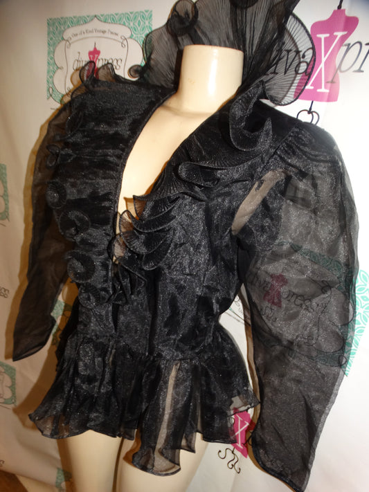 Vintage Ravel Black Sheer Sleeve Blouse Size L