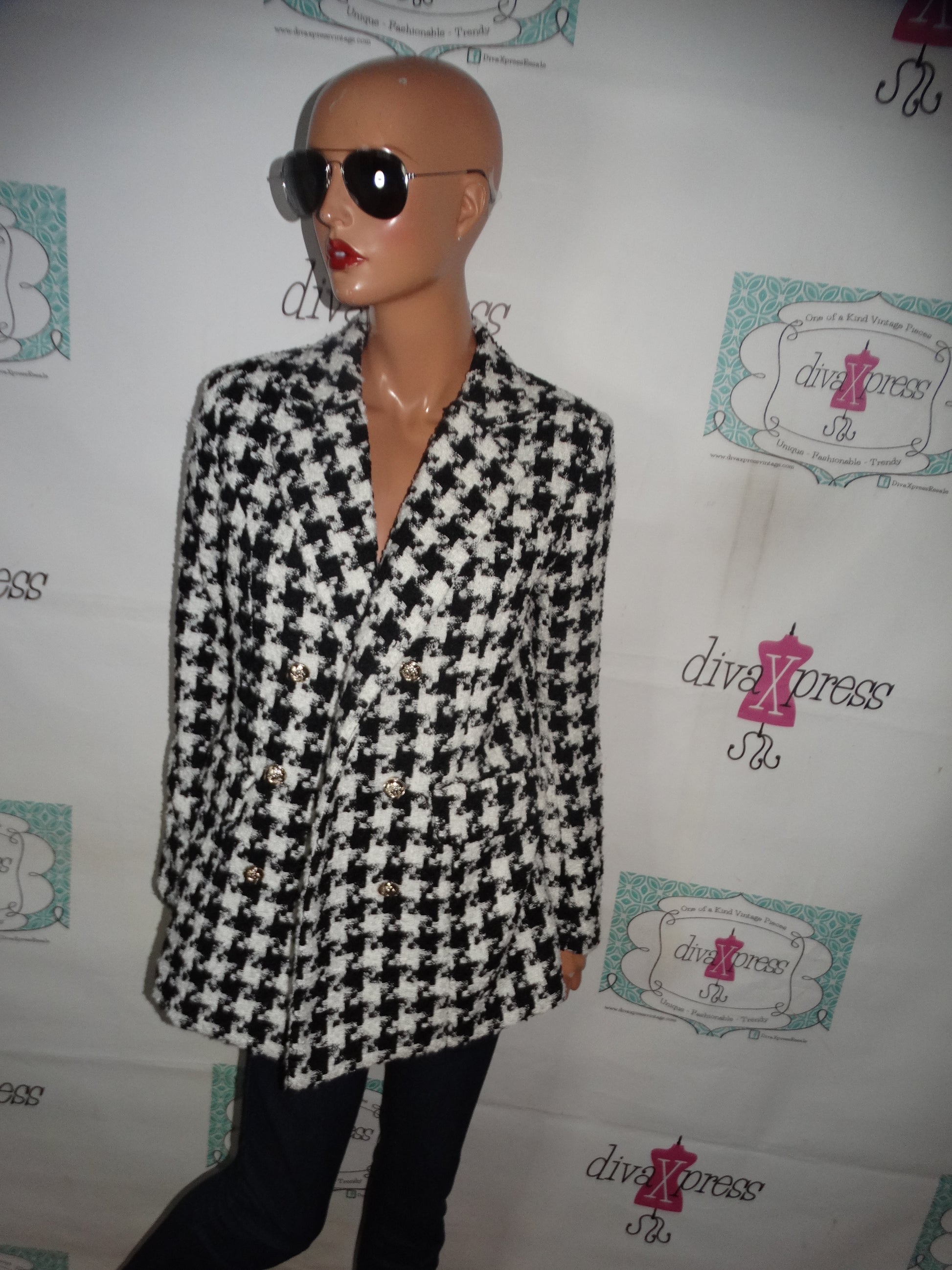 Black and White Hoodtooth Blazer Size M