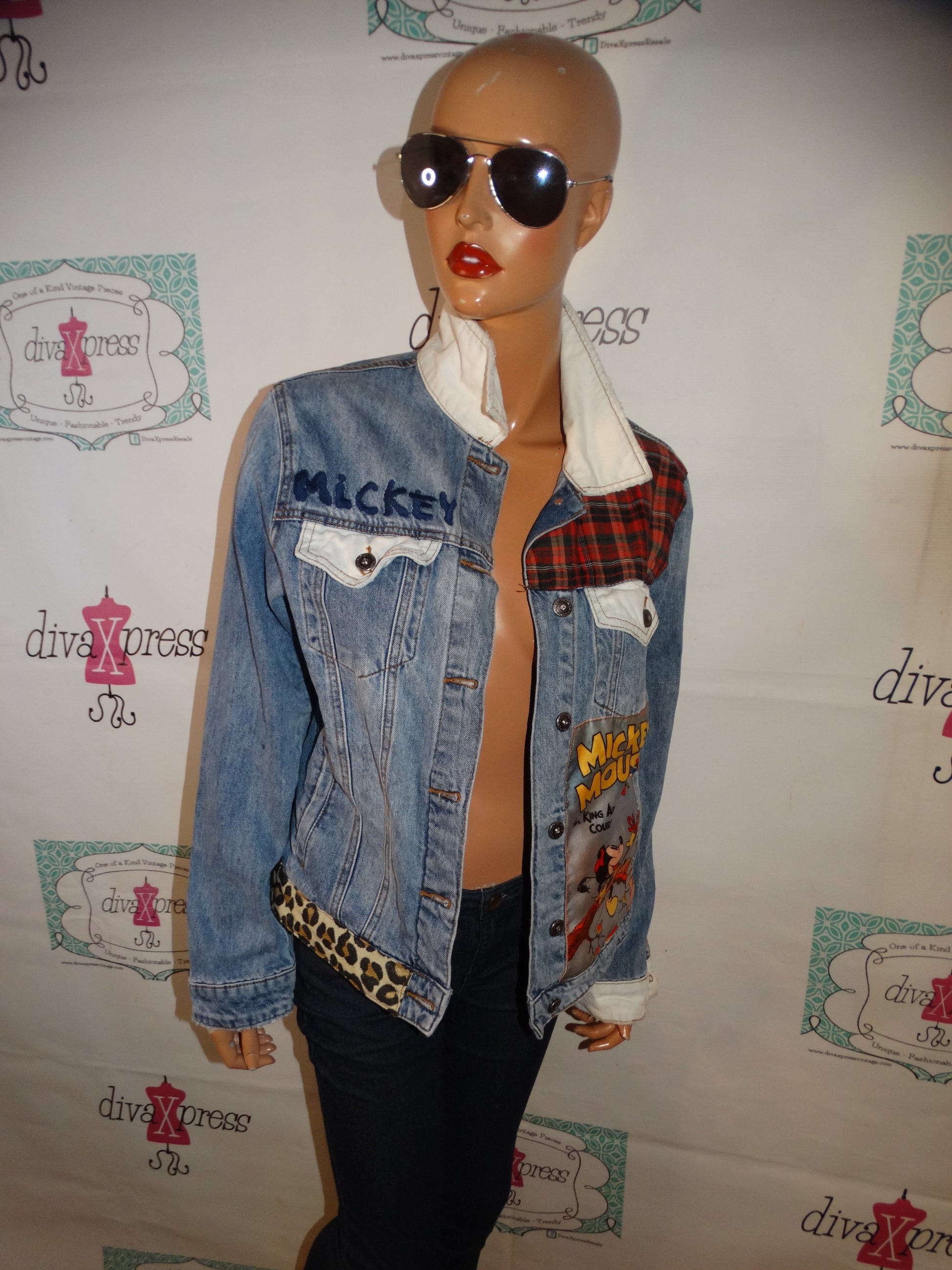 Blue Jean Mickey Mouse Detail Jacket Size L