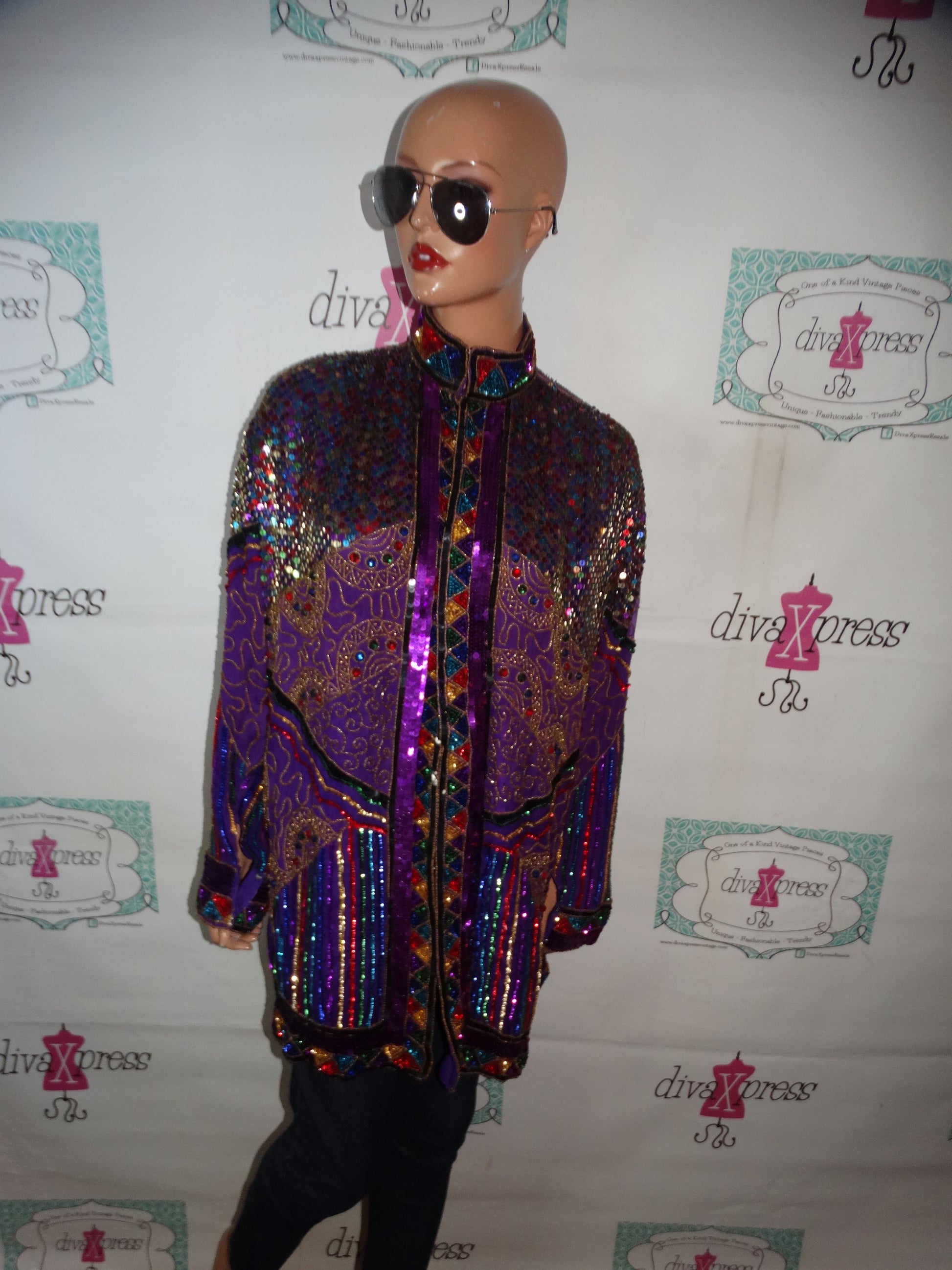 Vintage Annebelle Purple Heavy Sequins Top/Jacket Size 1x