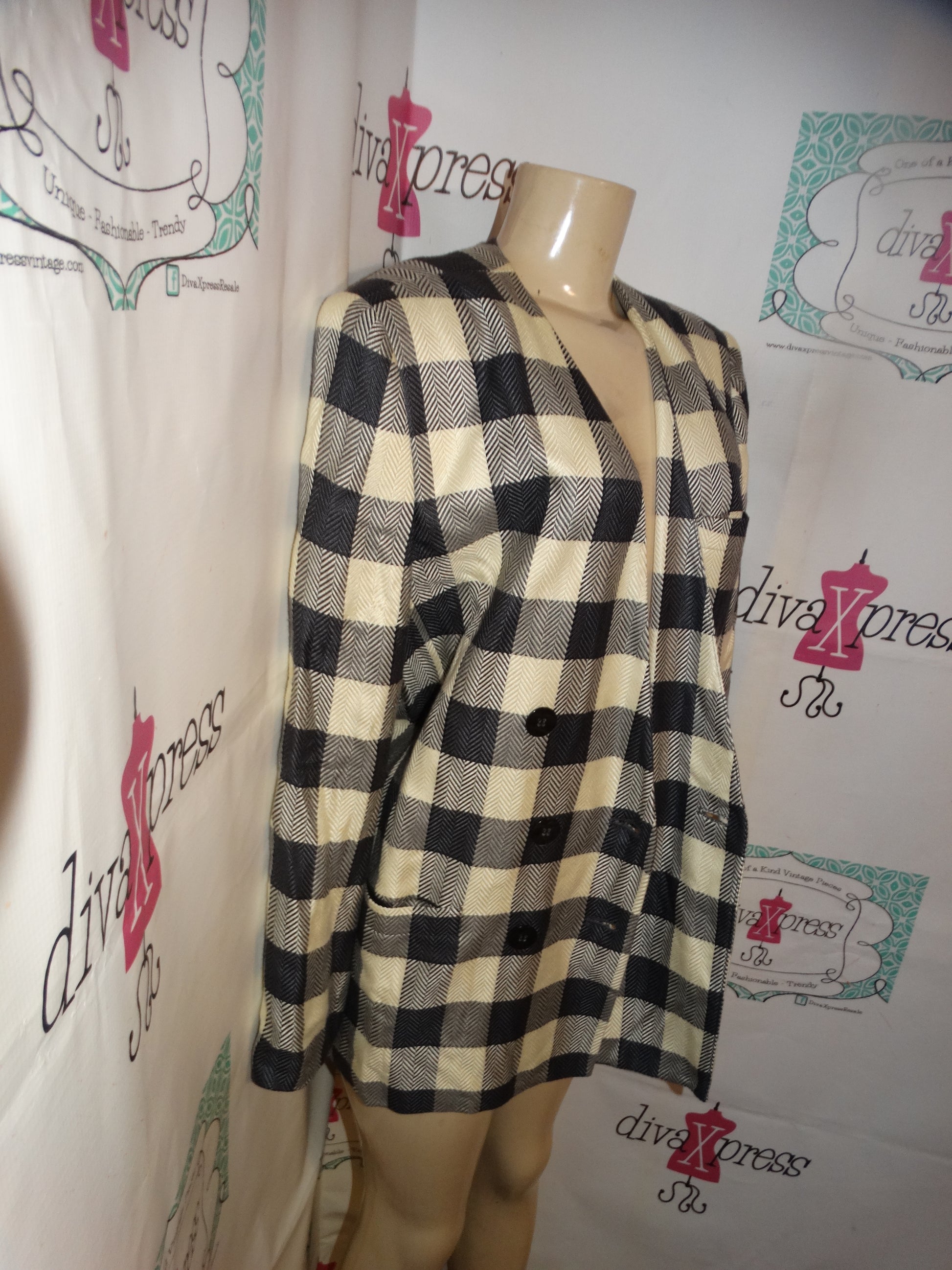 Vintage Jaqueline Gray/Cream Blazer Size L