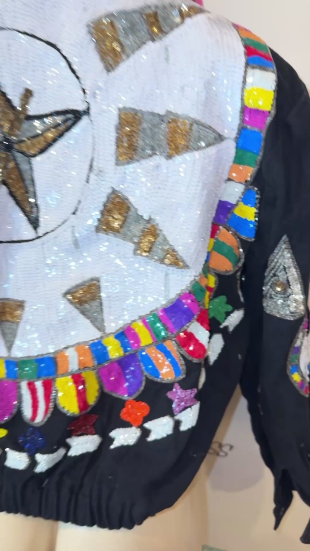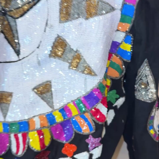 Up for sale is this lovely Vintage Modi Demin Black Heavy Sequins Jean Jacket Size M